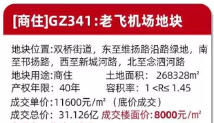 2021年12月30日,正值2022年元旦来临之际,扬州最新一轮土拍落下帷幕,本次土拍中体量最大,出让金额最高,受市场关注的GZ341地块(原老飞机场地块)由城建置业公司与华建地产联袂摘得,可谓是“名花逢其时,宝地遇良主”。