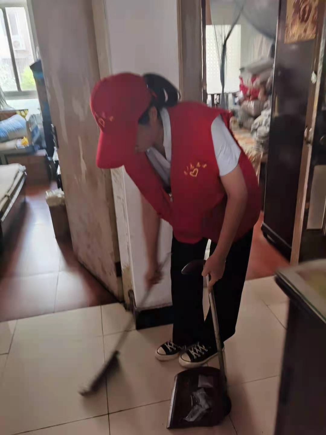 随后,志愿者们还来到居民家中为老人们量血压、测血糖并向他们讲解如何预防高血压的知识,一旁的志愿者见老人家里空间狭小且凌乱,在征得老人同意后,将老人家中的杂物进行分类,把可以回收的报纸、塑料瓶打包好;把没用的杂物、垃圾清理出来,搬到屋外垃圾桶丢弃,经过大家1个多小时的忙碌整理,老人家居环境比原来更加整洁卫生了。